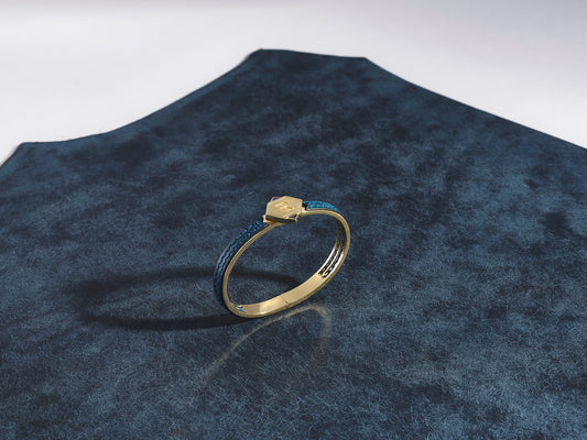 Twined Leather Bracelet, Large, Bleu Nuit, Black Nacre