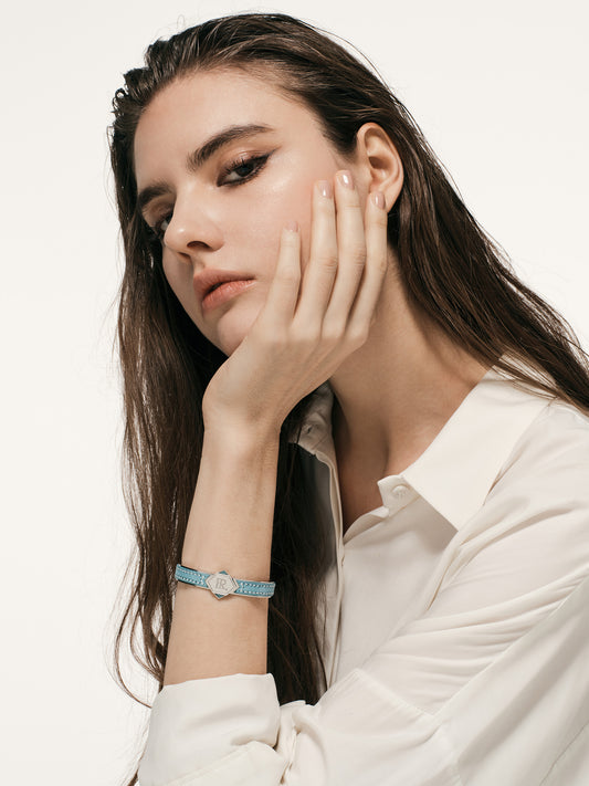 Twined Leather Bracelet, Large, Sky Blue, Amazonite