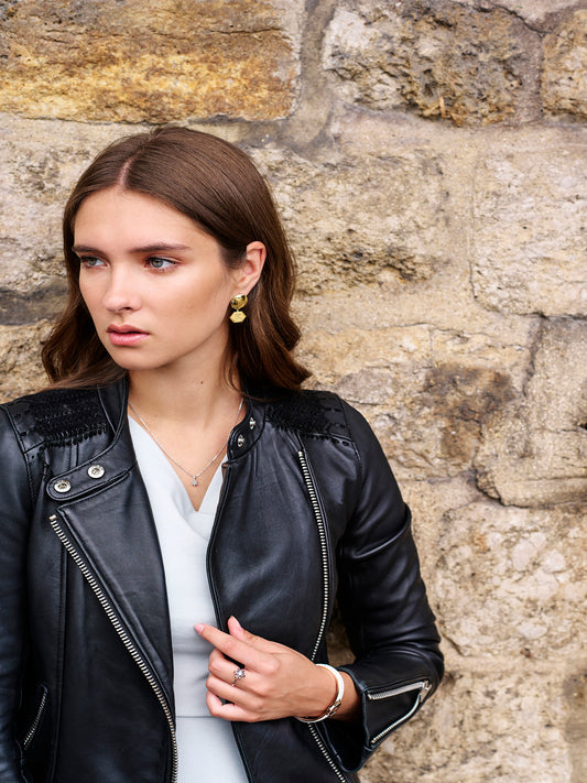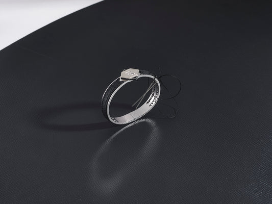 Twined Leather Bracelet, Small, Black Texture, Black Spinel