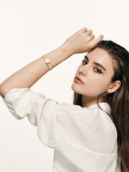 Twined Leather Bracelet, Large, White Texture, White Nacre