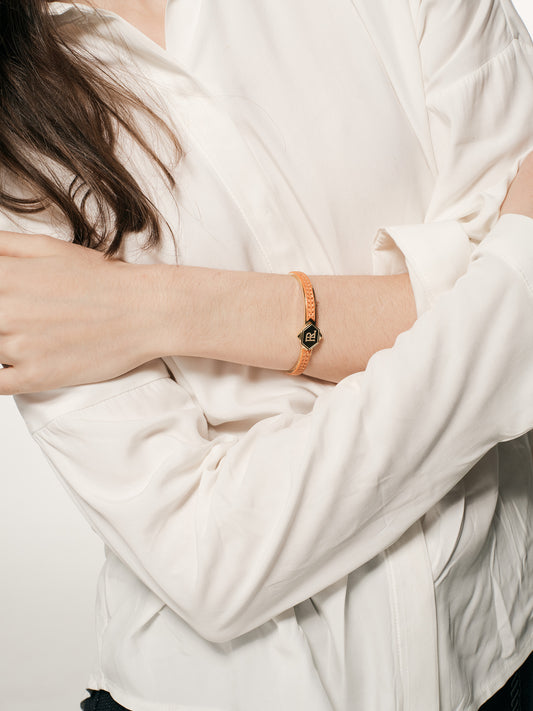 Twined Leather Bracelet, Small, Orange Brown, Yellow Jasper