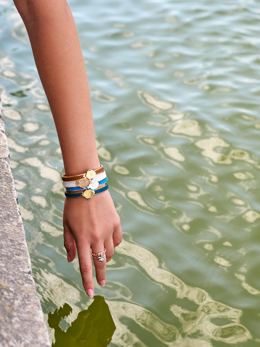 Twined Leather Bracelet, Small, Bleu nuit