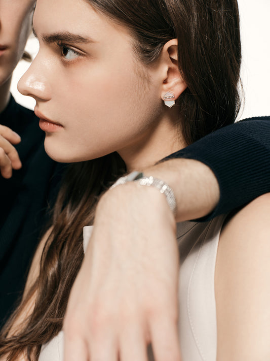 VOID Filled By You Earrings, Large, White Nacre, Diamond