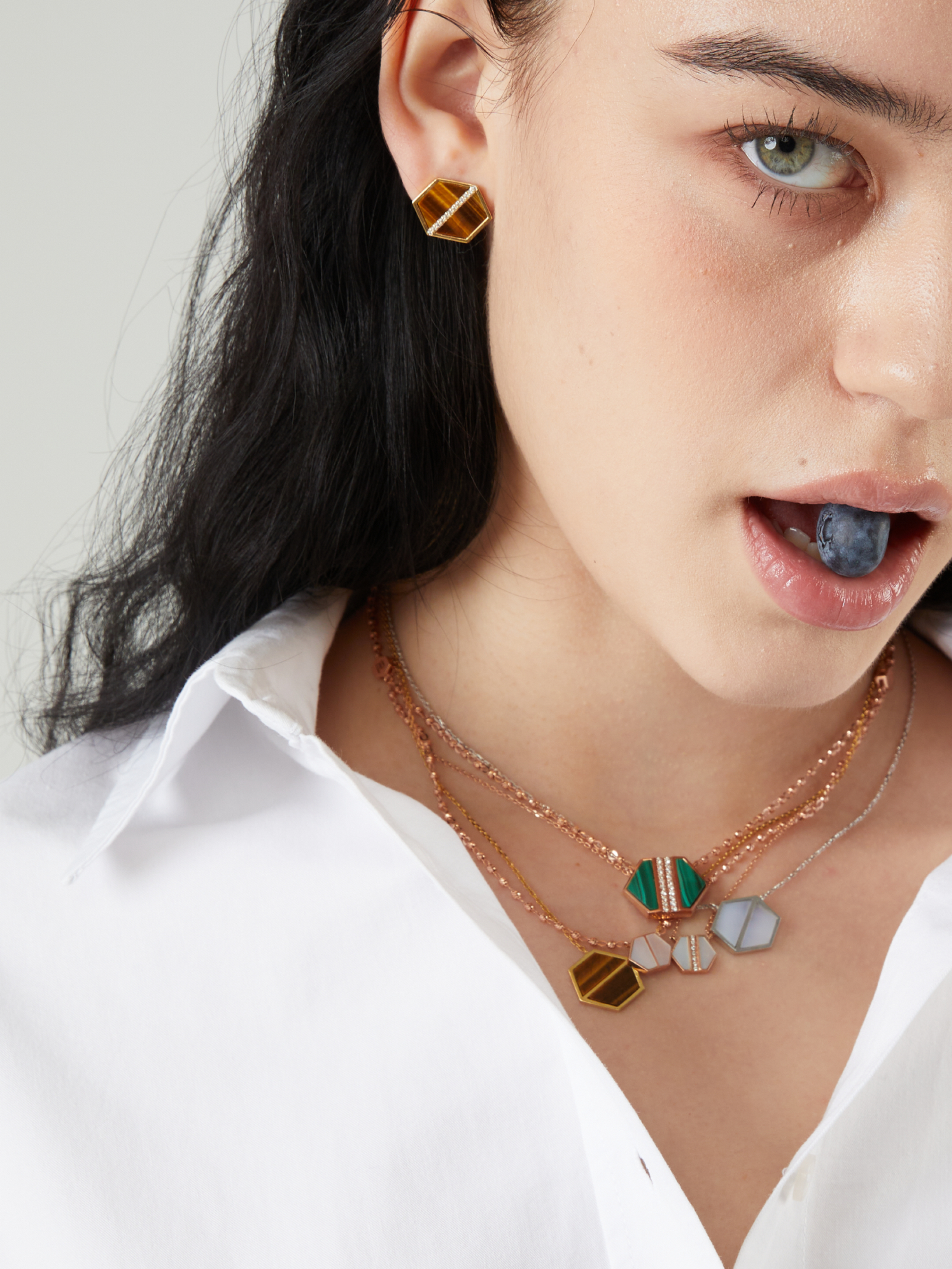 패셔너블하게 룩을 완벽하게 완성할 수 있는 포인트 아이템. 스톤 색감 혹은 다이아 조합에 따라 완전히 다른 감성으로 완성시킬 수 있습니다.*Small은 포인트 데일리로 심플하게, Large는 스톤의 매력을 더 강하게 느낄 수 있으며 볼드하고 화려하게 연출됩니다.